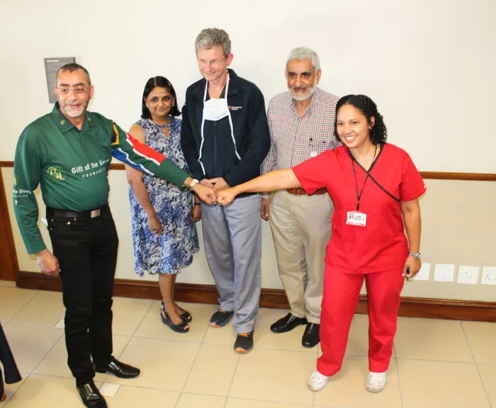 From left, are Gift of the Givers founder Dr Imtiaz Sooliman, hospital CEO Bhavna Patel, head of the department of surgery Professor Graham Fieggen, Groote Schuur Hospital Trust chairperson Mustaq Brey and head of surgery Professor Lydia Cairncross.