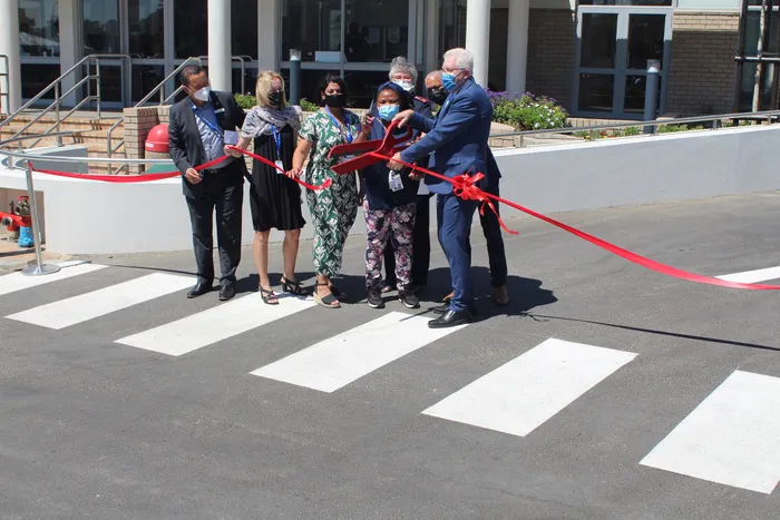 At the ribbon-cutting ceremony of the newly upgraded children’s hospital emergency centre, from left, are head of department for the provincial Department of Health Dr Keith Cloete, Children’s Hospital Trust CEO Chantel Cooper, hospital CEO Dr Anita Parbhoo, Health MEC Dr Nomafrench Mbombo, head of nursing at the hospital Mitzi Franken, chairperson of the Children’s Hospital Trust Randal Titus and Premier Alan Winde.