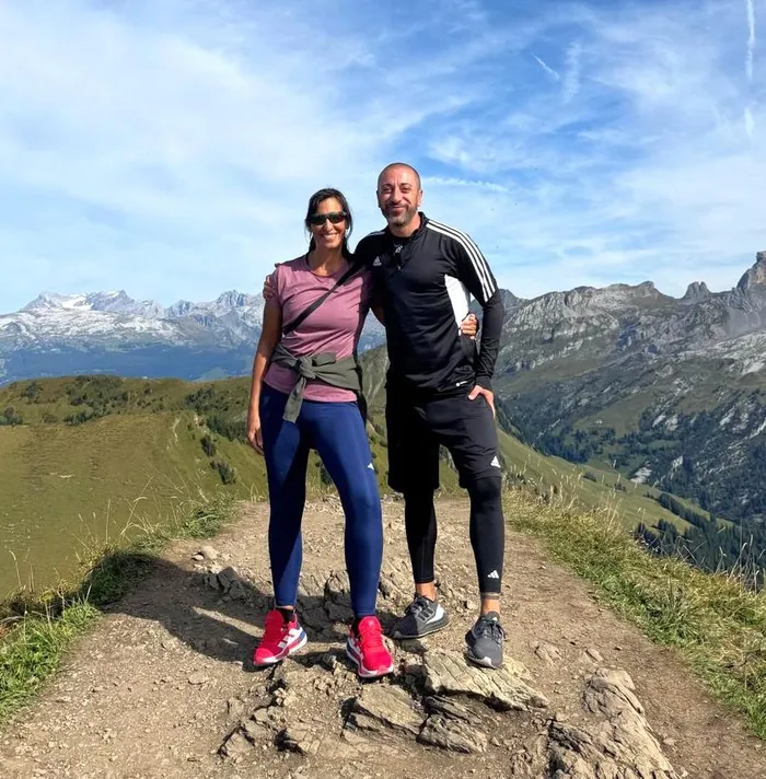 Kay Bodanza with her husband, Ivan Bodanza on the Stoos Ridge hike trail in central Switzerland.
