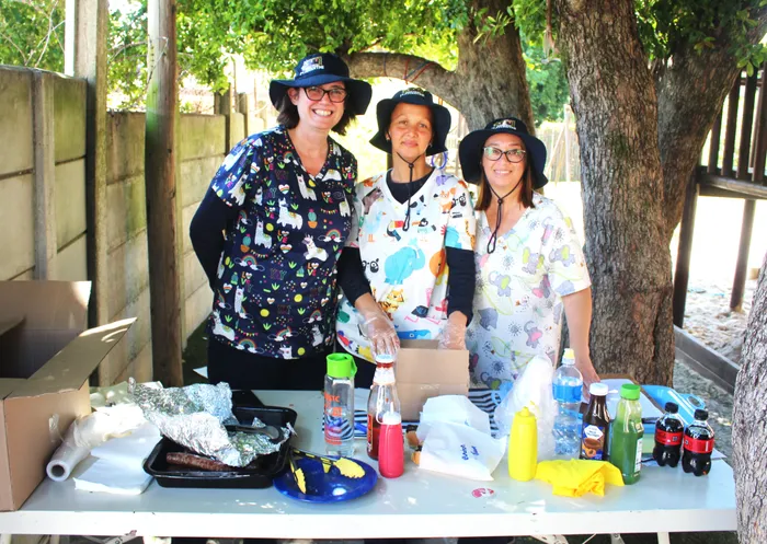 From left are the United Playcentre crèche staff, Laura Marcus, Shalee Claassen and Sam Paulse who prepared the boerewors rolls.