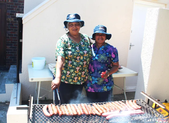The United Playcentre crèche staff, Ophelia Fortune, left, and Brittany Hendricks braaing the boerewors.