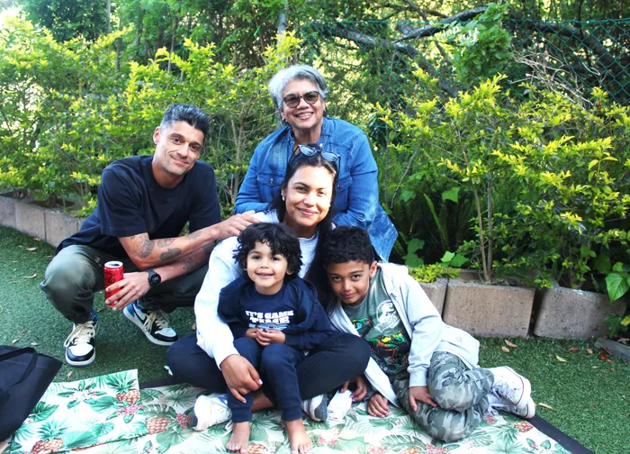 In front are brothers, Blake and Carter White, with their parents, Brandon and Nina White, and their grandmother Marlene Esau, at the back, enjoying their picnic.