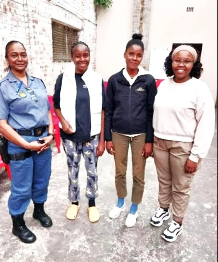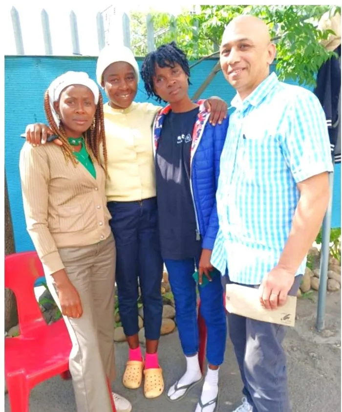 From left is Warrant Officer Lutchmee Chetty from Claremont police, with the reunited sisters, Fransina Ndemushakena and Linda Ndemushakena, with U-Turn’s social auxiliary worker Noxolo Mandukwini.