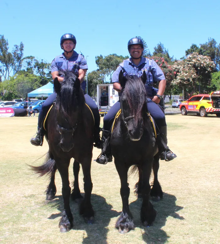 Sergeant Dudley Ryk, left, and Sergeant Aldebo Koen from the Western Cape Mounted Unit also allowed the community to meet with their horses.