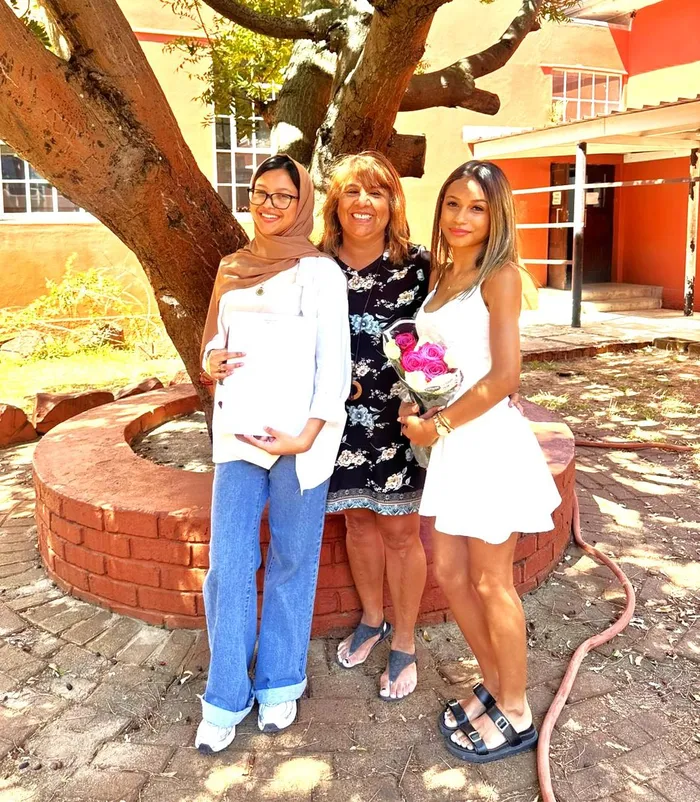 Windsor High principal Dianne Morgan, flanked between the top performing pupils, Ayaat Gameeldien, on the left, and Sitarah Allie.