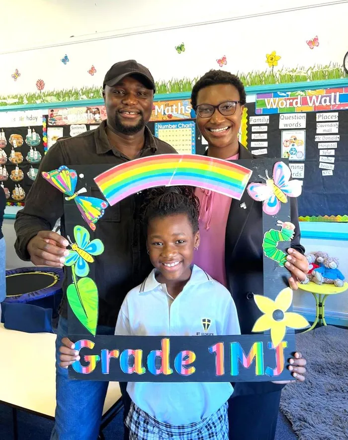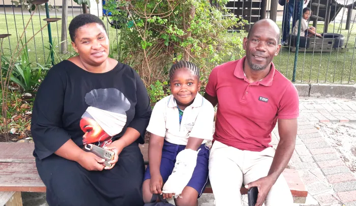 St George’s Grammar School Grade 1 pupil, Qhayiya Tshilombo, with her parents, Mulaji Tshilombo and Nomathemba Pupuma.