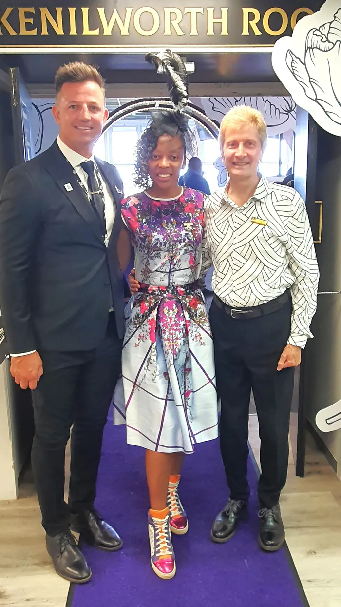 From left is Donovan Everitt, Chief Operations Officer, Race Coast, Matshediso Marota Director of the National Horseracing Association, and Councillor Richard Hill.