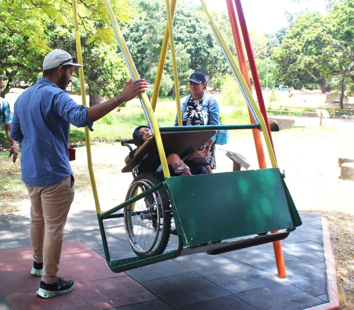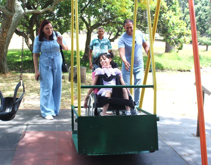Parents Shabar and Farzaanah Ayub from Rondebosch brought their 11-year-old daughter, Ra’naa, to experience the new wheelchair-accessible swing.