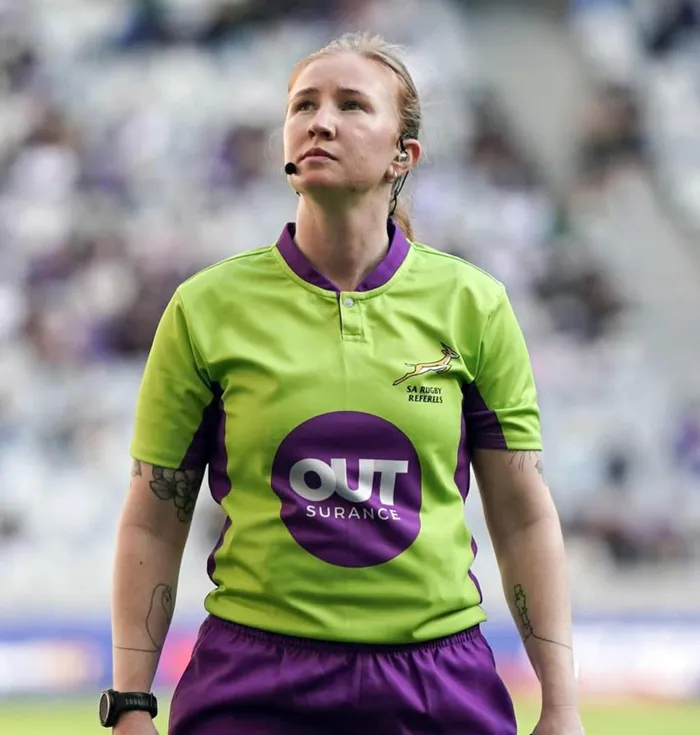 False Bay RFC's Zoe Naude , a former provincial player, refereed the under 21 match between DHL Western Province and the Leopards.