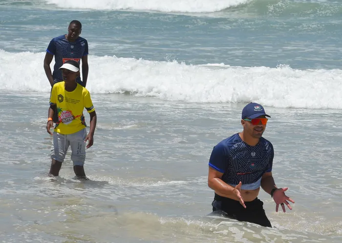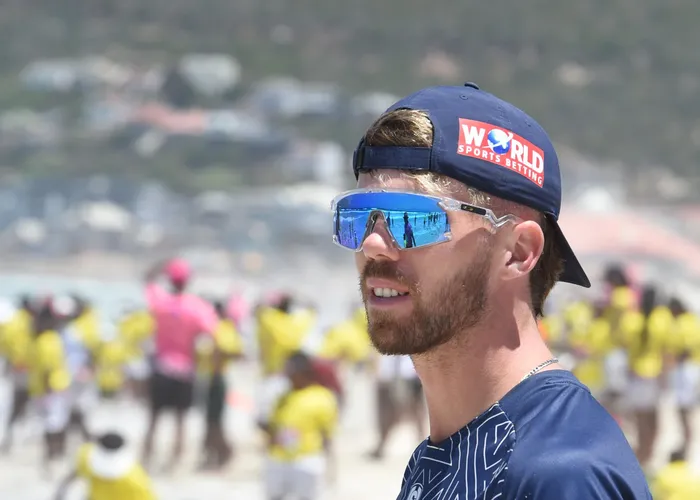 Western Province cricketer Dane Paterson on surf and slip duty during last week's Sporting Chance Calypso Beach Cricket Festival, at Sunrise Beach.